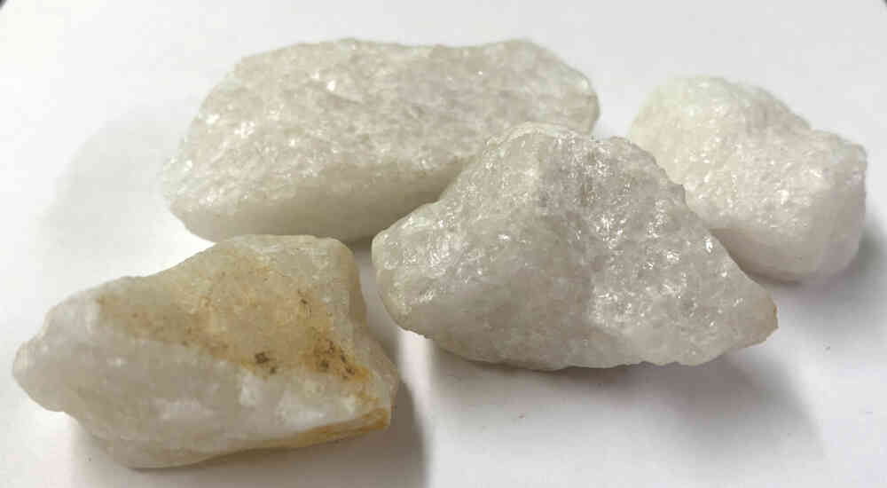 Quartz crystals are silicon dioxide, SiO2. Pure quartz crystals are colorless, but impurities in the structure lead to beautifully colored gems, including amethyst, rose quartz, and citrine. Most natural quartz crystallizes from magma or precipitates from hot hydrothermal veins.
